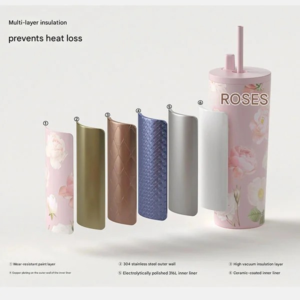 جسم الكوب مصنوع من الفولاذ المقاوم للصدأ عالي الجودة والذي يتم إعادة تدويره بنسبة 90% بعد الاستهلاك