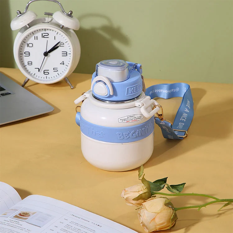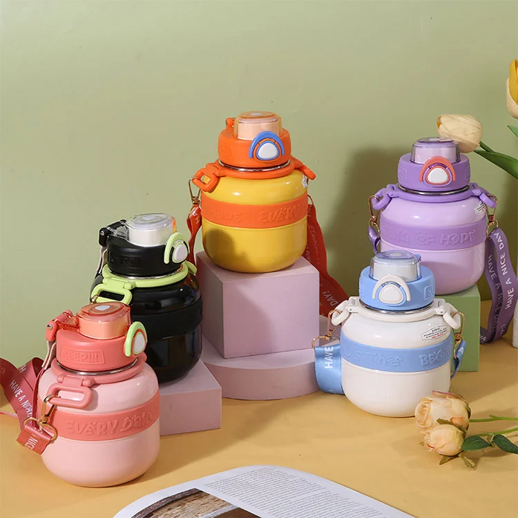 زجاجة مياه الصالة الرياضية هذه عبارة عن قارورة فراغ مصممة بشكل مبتكر مصمم خصيصًا للأطفال. يكمن الابتكار التكنولوجي الرئيسي في تصميم الغطاء.