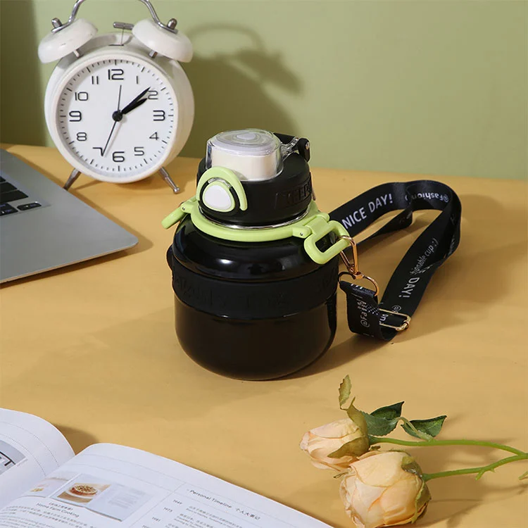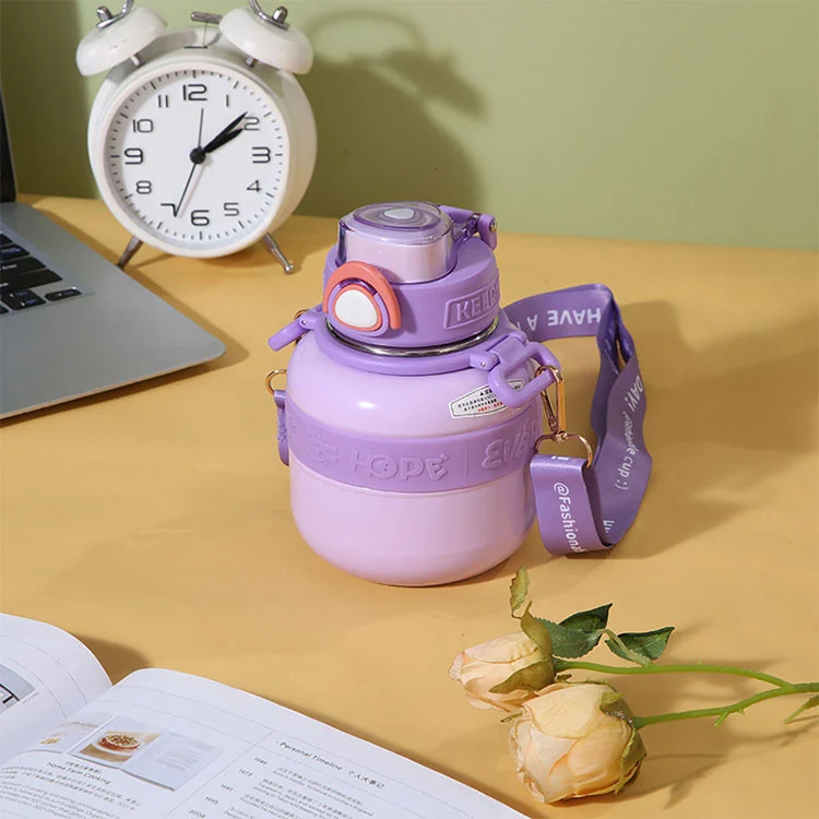 يتم تنفيذ طبقة فراغ بين الجدران المزدوجة لضمان حرارة فعالة والاحتفاظ البارد. تم تصميم الغطاء من مواد PP الخالية من BPA الجديدة. إنه يتميز بختم شامل لمنع التسرب. عندما يتم فتح الغطاء المحمّل بنابض ، تظهر قش مخفي بنقطة صغيرة ، عند الضغط عليها ، تخرج تلقائيًا من القشة.