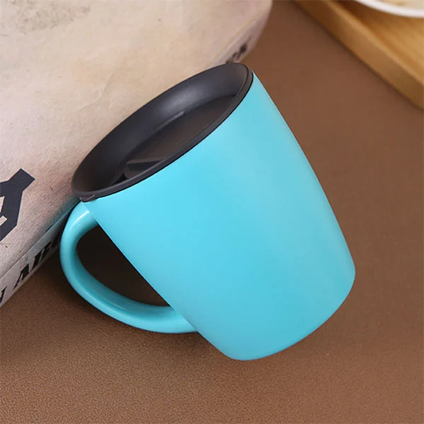 هذا هو القدح القهوة المصنوعة من الفولاذ المقاوم للصدأ مع غطاء ، ومظهر مستدير ، يتيح لك الاحتفاظ بمزاج جيد ، وضعت على الطاولة ، هو أيضًا عمل فني.