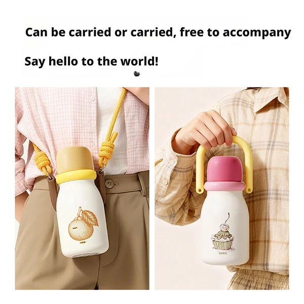 يتميز كوب الترمس الخالي من مادة BPA بتصميم مريح لجسم الزجاجة، مما يجعل من السهل على الأطفال (أكثر من 18 شهرًا) الإمساك به بأيديهم الصغيرة.