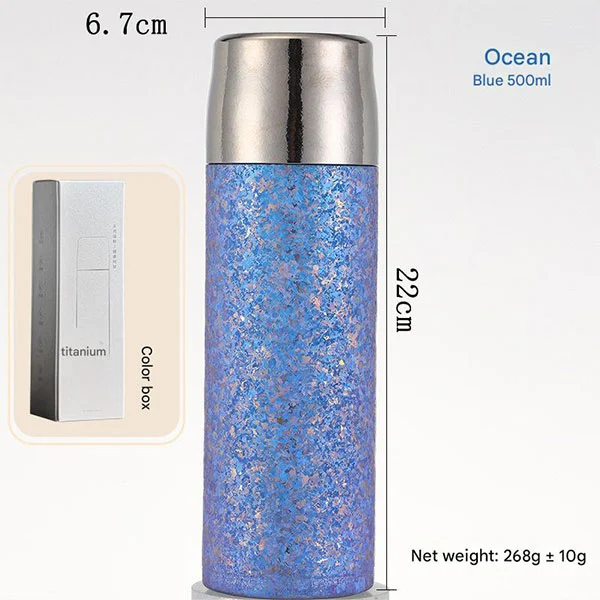 تتميز زجاجة الشاي الكلاسيكية من التيتانيوم بكوب مانع للتسرب مصنوع من التيتانيوم النقي من الداخل والخارج، ومجهز بأغطية مقاومة للتسرب، وأغطية أكواب من التيتانيوم النقي، وطبقة مزدوجة مضادة للحروق!