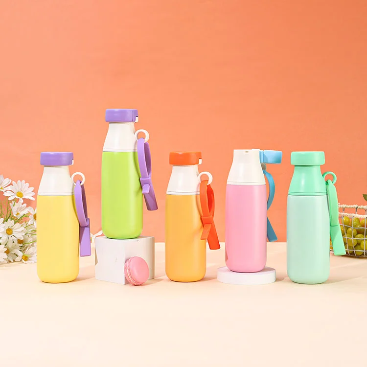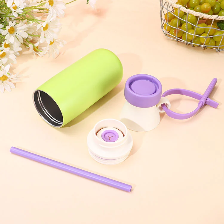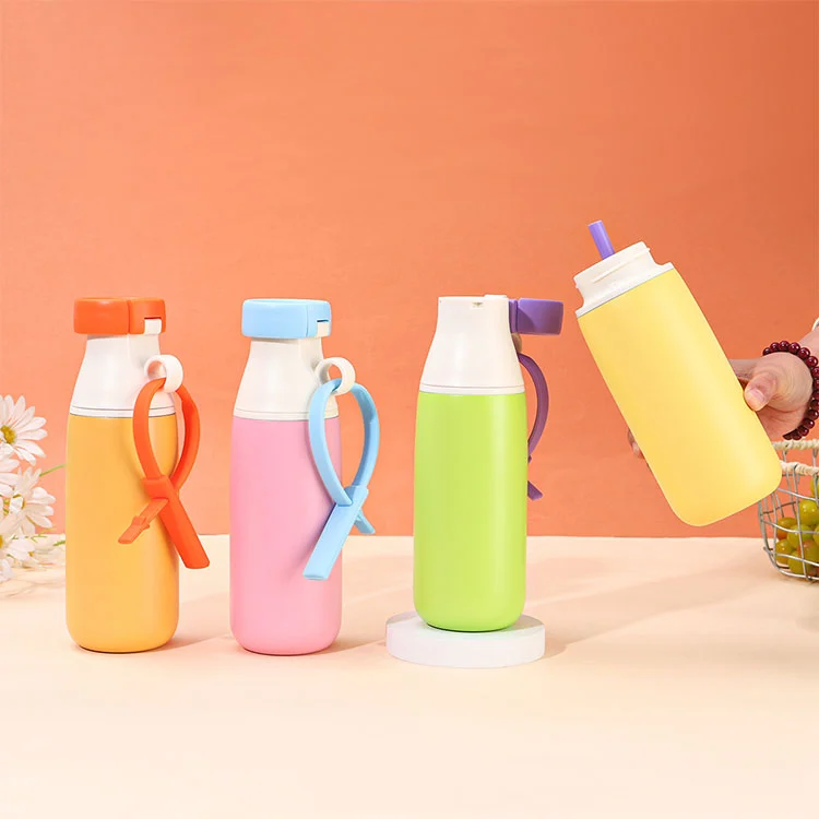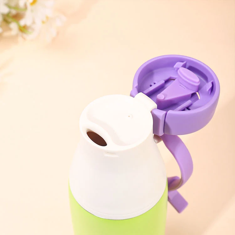 الزجاجة المعزولة بالفراغ المصنوعة من الفولاذ المقاوم للصدأ 304 تنتمي إلى زجاجات حليب الدوبامين، مع غطاء دائري يمكن فتحه بسهولة بسحبه وإغلاقه بضغطة واحدة فقط لمنع فتح غطاء الزجاجة عن طريق الخطأ.