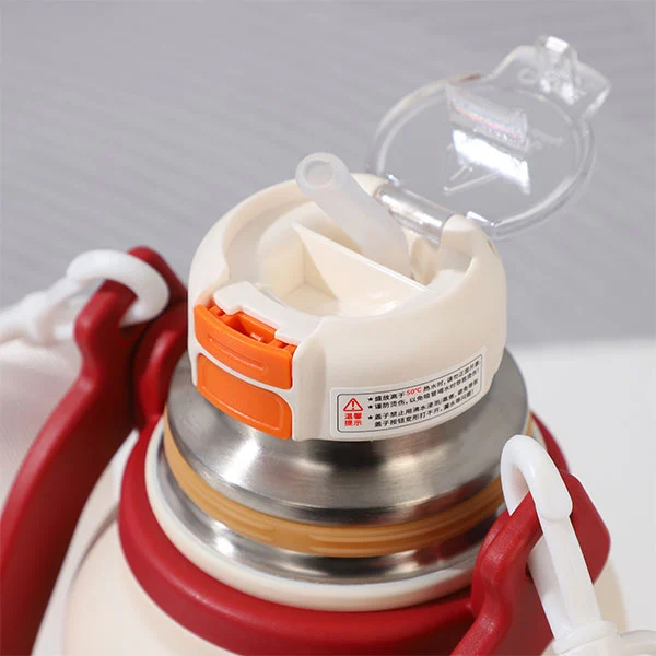 غطاء الكوب ثلاثي المراحل مجهز بقش قابل لإعادة الاستخدام لسهولة الشرب، وتصميم واسع الفم لسهولة الشرب. نحن نستمتع بشكل خاص باستخدام الشفاطات أثناء القيادة؛ يسمح لك هذا الترمس بتركيز نظرك بسهولة على الطريق أثناء الاستمتاع بمشروبك. تجدر الإشارة إلى أن الجهاز الدوار الموجود على غطاء الكوب ليس مغلقًا، وغطاء الكوب هذا ليس مانعًا للتسرب تمامًا.